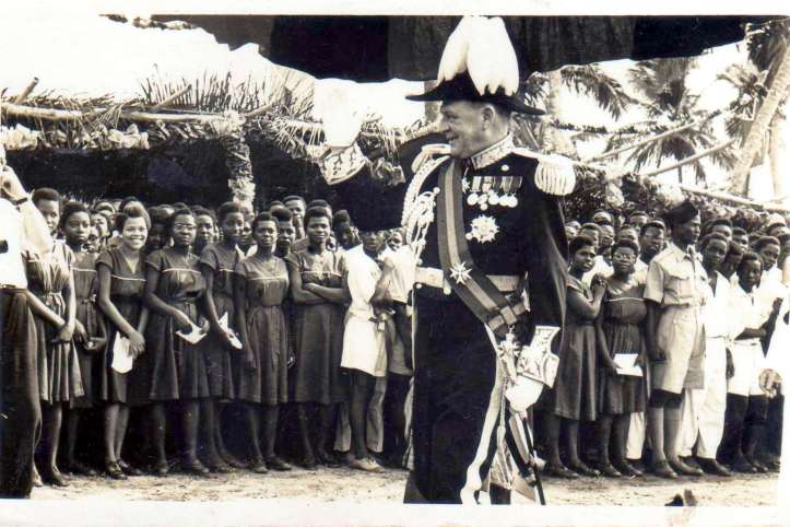 The picture below is from my mother’s archives.  When Ghana freed itself from British Colonial rule in 1957, Lord Listowel was sent to wind-up the colonial administration. A parade was held in his honor to welcome  to the former Queen’s colony.  My mother and her schoolmates from Wesley Girls High School are in the front row.  I love this picture: how preened Lord Listowel is, the looks on the faces of my mother and her friends, even the member of the West African Constabulary standing at attention in the far right of the picture.
